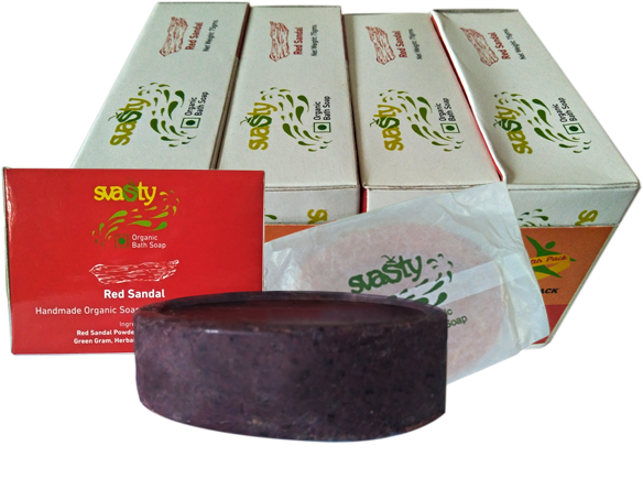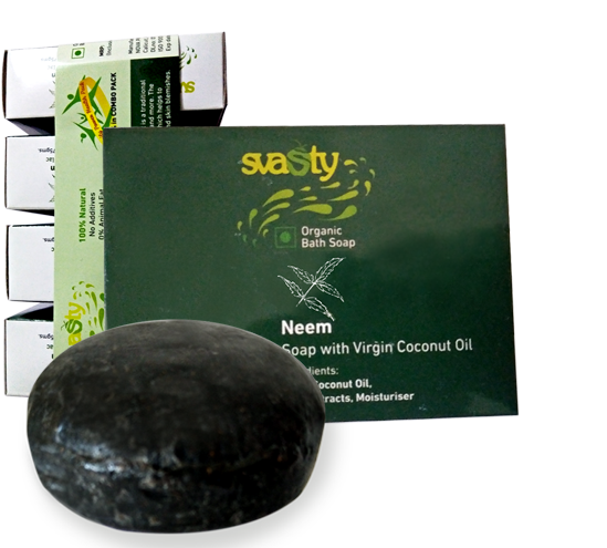 svasty Natural & Handmade Bath Soaps are ingeniously produced as a mild, skin-nourishing soap that offers a magnificent long-lasting lather and leaves your skin feeling clean, soft and radiantly healthy. The 100% natural soaps are made using natural herbs in a base of pure virgin coconut oil without the use of atificial colurs, added flavors or chemicals and animal fat. The soaps are handmade from ingredients of the highest quality, which contain virgin oils, herbal extracts to cleanse, moisturize and soothe your skin.